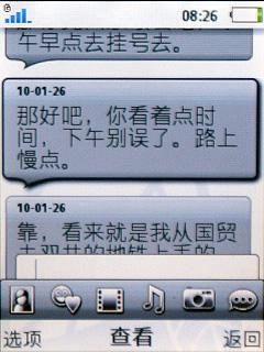 索尼爱立信J10的信息功能包括普信息、MSN、电子邮件。信息输入界面很 简洁,输入法支持拼音和笔画两种输入法,输入的时候支持智能关联,速度还是不错的 。只是拼音的显示太小可能眼睛不好的人不太容易看清。