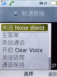 J10的拨号界面字体比较大,由于手机支持3G,点击选项还支持视频通话, 最大的特色在于这款手机在通话的时候支持noise shield、clear voice和录音,这两个 功能与摩托罗拉的丽音技术类似,可以有效的过滤通话时周围环境的杂音,非常实用。