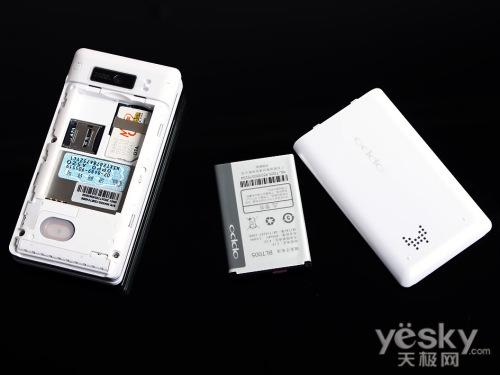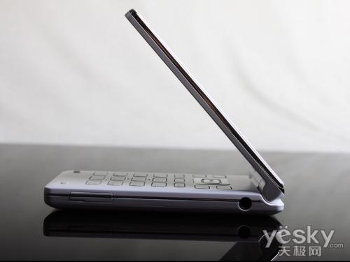 光滑的上翻盖较容易沾上指纹和油污,除了上翻盖之外,机身其余之处在烤漆方面均经过了细腻的磨砂处 理,白色色的机身显得大方端庄,有着大家闺秀的感觉。