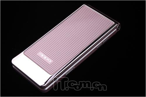 资料显示OPPO U529的体积为115×52×17.6mm,机身长度要比A520长一些,正面有粉色图案构成的大面积面板,周围是一圈光亮的边框,搭配起来的感觉较为时尚,只是光亮的部分容易残留指纹。整机重量是108克,拿在手上手感适中,虽然开始的时候觉得U529的机身略厚,不过考虑到该机配备的是500万像素支持自动对焦的摄像头,17.6mm的厚度还是可以接受的。