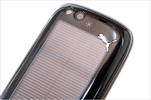 Puma M1的机身顶端(背后)配备了320万像素拍照镜头以及LED补光灯,太阳能面板右上侧还有镀铬的Puma商标。