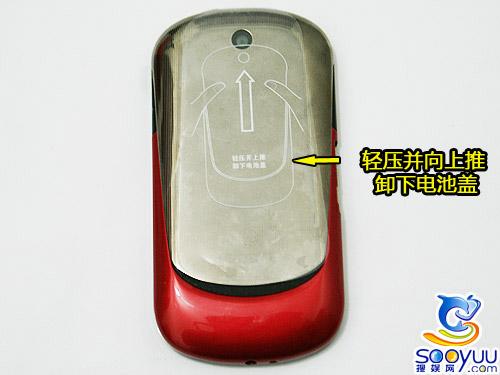 手机背面的电池盖的一层膜告诉用户怎样打开电池后盖,考虑还是比较细致的。