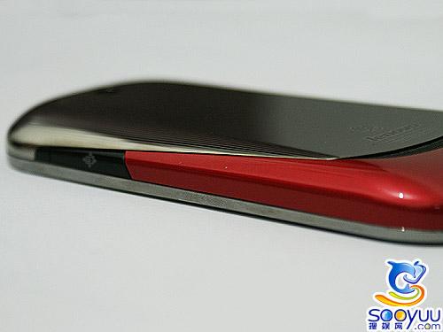 在金属后盖的下方印有联想“Lenovo”以及“樂”的logo,使手机的个性风格化更加的鲜明。 值得一提的是在电池后盖下方有一个狭长的部分其实是手机的扬声器装置,这样的设计还真是别出心裁啊 。