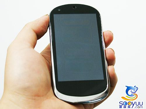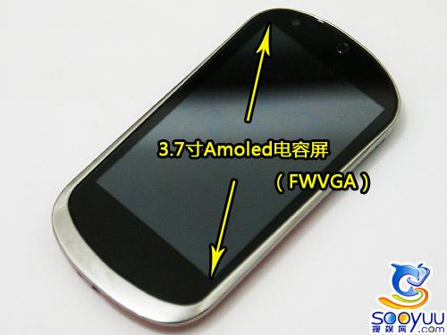 首先来看手机的正面,乐Phone采用的是目前最流行的大屏幕触摸式的设计,主屏幕是一块3.7 英寸Amoled材质的电容式屏幕,分辨率达到了FWVGA,显示效果想必是相当出色的。