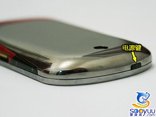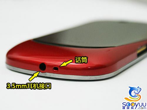 再来看看手机的四周都有什么东西,首先在乐Phone圆润的顶部有一个相对非常小的电源键,非常低调,下面也仅仅能看到一个3.5mm的耳机接口和一个话筒的小孔,这两个部分的接口都非常的小,使手机表现的整体性达到了最大化。