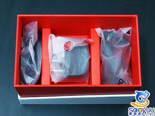 打开包装盒发现里面的排列总共分了三层,首先最上面一层是手机的说明书、保修卡、保护套以 及拭屏布,紧接着第二层是手机本身,最底部是配件部分,和苹果的iPhone一样分为三格,里面包括耳 机、适配器以及数据线。