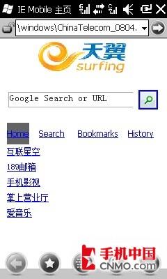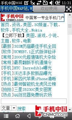 这款手机内置了IE6浏览器,和PC一样,可以浏览普通的WEB网页,支持内容放大和缩小。在体验中,笔者对于内置IE6浏览器的流畅性还是比较满意的。
