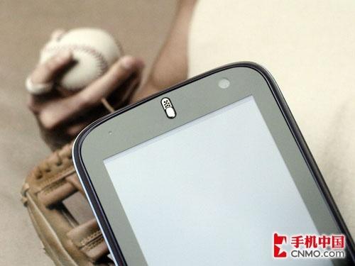 屏幕上方拥有一个听筒,占用面积较少,而且有金属防尘网,防止了灰尘的进入。在听筒的左侧还隐藏有一个光线感应器,而右侧则拥有一个前置摄像头,但是由于网络的原因,不提供视频通话功能,这一点不免有些遗憾。