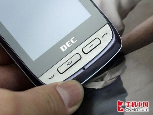 手机的底部是中恒的“DEC”标志,下方是按键区域,采用了金属拉丝工艺,带动着整机都弥漫着金属质感。因为该机是一款双模双待机,所以在按键除设计了两个拨号按键,方便用户根据环境使用不同号码。