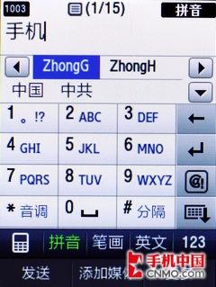 B5310U的键位设计更为趋向于电脑端标准键盘,顶端的一排字母还兼顾着数字录入的功用,这样的设计很大程度上减少了空间的重复浪费,也使得三星B5310U的按键颗粒更为均匀。