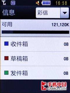曾几何时,比拼手机信息存储空间也是当时机友的一大爱好,但伴随着手机固化内存成为标准配置,内容存储空间已经不再是限制用户使用感受的部分。三星B5310U提供了1300条短消息存储空间,彩信内容则共享121MB机身内存,达到了海量存储级别。对于喜欢短消息互爆的拇指一族而言,绝对够用。