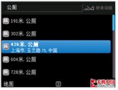 许多在屏幕浏览地图时,不显示的地址名称搜索时大多能找到(比如村镇的名字,城市住宅小区的名字,城市内的“公厕”等等)。个人觉得目前Ovi地图的信息点数量并不亚于Garmin的地图,大概是因为Ovi很多地址在浏览地图时不显示出来,才让人感觉Ovi地图不够详尽吧。以下举例是在上海市区某地点搜索光标附近“公厕”的搜索结果,这些公厕在搜索之前并没有显示在地图上。
