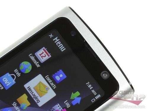 诺基亚6700s的机身顶端为副拍照镜头以及光线感应器,由于集成在了较窄的机身边框以内,所以显得十分紧凑: