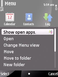 长按菜单键,可以调出6700s的横向多任务运行图标。这样的设计在之前推出的S60第三版手机中颇为常见: