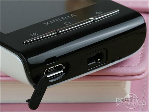 采用Micro USB通用接口是索爱在Android智能手机里面遵从的惯例,而3.5mm耳机接口的配备也使其通用性十分良好。细看耳机接口可以发现其实还有一个缺口,它是为索爱专用的线控耳机而制作的。耳机口的右下角还有个挂绳孔。