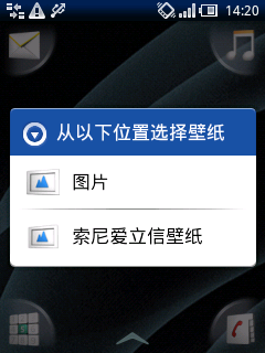 索爱X10 Mini的桌面具有四页,由于面积上比较小,如果要添加较多小插件就会显得有点拥挤。为了适应小屏幕的设计,常用菜单采用隐藏在四角的设计。触摸屏在灵敏度上是十分足的,实际操作感受还是十分良好。