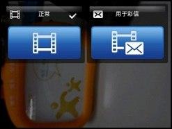 录像菜单的设置也跟拍摄菜单差不多,不过左上方改为LED灯控制键(录像过程可以长亮),画幅方面包括正常和用于彩信两种模式。