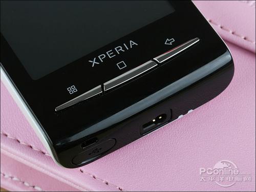 在按键的设计上与普通的Android手机有所不同,既要照顾小型化的机身,也要集成索爱X10的风格。左边按钮是“附属菜单”键,中间是“主菜单键”,右边是“返回键”。