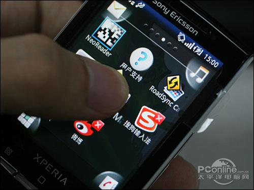 老实说,这块LCD在显示效果上并不逊色,具有1600万色。另外,分辨率方面跟2.55英寸的屏幕还是比较相称,当然,如果看惯了高分屏的用户会有轻微觉得粗糙的感觉。另外,索爱X10 Mini也不具备多点触控功能,不过在操控方式上有其特点,下面会有专门的介绍。