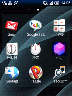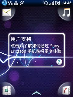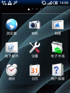 索爱X10 Mini的系统相对于原生的Android有不少的改动,桌面具有四页,由于面积上比较小,如果要添加较多小插件就会显得有点拥挤。为了适应小屏幕的设计,常用菜单采用隐藏在四角的设计。触摸屏在灵敏度上是十分足的,实际操作感受还是十分良好。