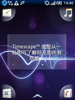 索爱X10 Mini还保留了X10上面的Timescape功能,就像是MOTO的MOTOBLUR一样,把Facebook等一些社交网站聚集在一起,并进行推送。