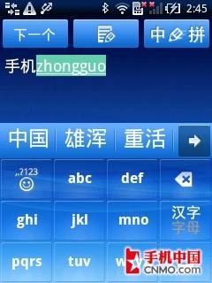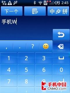 输入法方面,受限于屏幕的分辨率,索尼爱立信X10 mini并没有采用大部分Android界面的虚拟QWERTY方式输入法,而是在点击了输入框之后进入到专门的文本输入页面。