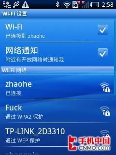 Wi-Fi无线网络可以给手机带来快速的的网络体验,内置的浏览器可以轻松打开较为大型的WEB网站。我们在测试中采用了Wi-Fi打开手机中国首页,仅仅用了不到10秒钟就完全打开了,速度还是很让人比较满意的。