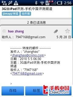 索尼爱立信X10 mini邮箱界面