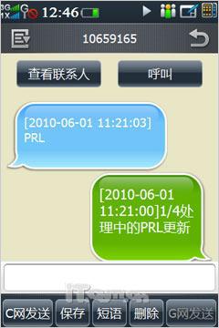 用户若想快速更改主卡,可点击N92菜单界面左上角的网络信号栏调出双卡选择菜单,而在通话记录菜单下,我们能通过每条记录上的“C”或者“G”小图标来识别它使用的通讯网络,用户不需要担心分不清电话信息来源。同样的管理方式也出现在短信管理功能中,N92可以将短信以C或者G来是源于那个卡号的信息,能够避免管理上的混乱。