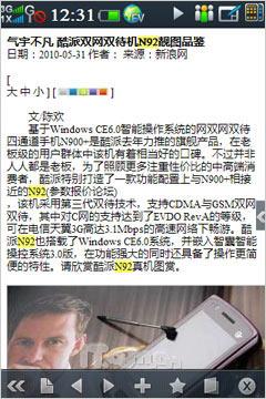 在有线连接方面,酷派N92使用了此前酷派手机一直通用mini USB接口,保证了兼容性,在Windows2000以上的系统能够实现无驱U盘应用,不过ActiveSync同步功能需要安装酷派通软件后才能进行,略显麻烦,但酷派通软件中还是包含许多实用功能的,有时间的朋友不妨仔细去体验一下。