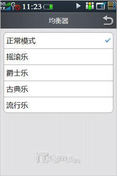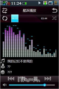 在音频播放方面,酷派N92支持MP3、WMA、WAV、AAC、AMR、MIDI、MMF等主流音频格式,并拥有不错的播放效果,较为特别的是在播放器界面中设置了两条播放状态栏,其中上方的进度栏还设有播放时间同步更新。除此之外N92还支持均衡器设置,后台播放、歌词显示、频谱类型、来电后恢复播放等功能也非常实用。