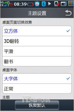 与苹果iPhone一样,酷派N92也能通过长按桌面图标对相应快捷方式的位置进行自由调整,而每屏桌面的切换还可以选择多种切换效果,另外桌面字体的大小、主题模式、随机墙纸等功能均能实现,可玩性很高,也使得操作者可以感受到良好的用户体验。