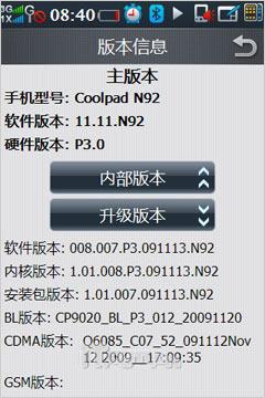 由本机信息可知N92采用Freescale i.MX31L处理器,内存为256MB,除了拥有接近1.28GB的机身存储空间(约180MB分配给酷派通软件存储)之外,酷派N92还支持micro SD卡热插拔扩展,满足了大部分用户对音乐、视频、各种文档的存放需求。