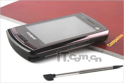 与一般手机相比,酷派N92机身侧面的插槽与侧边的融合度更高,给人更强的整体感,如果不是两侧micro SD与I/O CONNECTOR的英文提示,其左侧的存储卡插槽以及右侧的mini USB多合一插槽还真不易察觉。由于是一款商务机型,N92没有设计挂饰孔,机身右侧还有电源键与手写笔插槽。