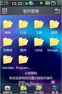 为了更为方展示出手机所拥有的主要功能,酷派N92的桌面多达五屏,除了上面提到的Wiget页之外剩下的四屏都是以图标排放快捷方式。第二屏主要是用户常用的通信管理功能,第三屏则是商务人士常用的证券、小秘和导航,而第三屏为一些常用的系统工具以及游戏娱乐,系统支持则放在最后一屏。