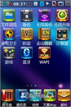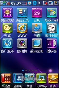 在手机正面的天翼标志早早就告诉我们酷派N92是一款中国电信深度定制的手机,因此该机菜单中内置了电信多种特色业务,例如189邮箱、爱音乐、互联星空、手机影视、号百(号码百事通)等,方便用户在获得全面的3G体验同时,又能快速的使用中国电信所提供的特色服务。对于这些深度定制的功能业务,相信各位读者也是有所了解,因此在这里就通过一些直观的截图来代替文字说明了。