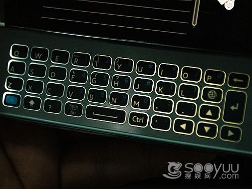 打开侧滑键盘我们能感觉到有明显的弹性阻力,手感还是不错的,U8的全键盘键帽设计采用的是 全键盘的样式,上边有标准的QWERTY键盘,上面的按键手感偏硬,按下会有响声,而且键帽在键盘中 显得很小,而键帽旁边有不少空间,还是有优化的可能。