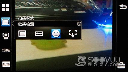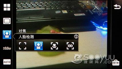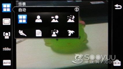这款手机的拍照界面色彩比较素气,中间位取景窗口。左边为设置栏,可以对场景、拍摄模 式对焦等参数进行调节,手机支持全景模式和笑脸识别等实用功能,表现还是很全面的。在最下面用户也 可以直接选择Auto模式,一切都变得更为简单了。