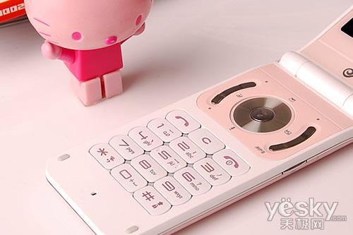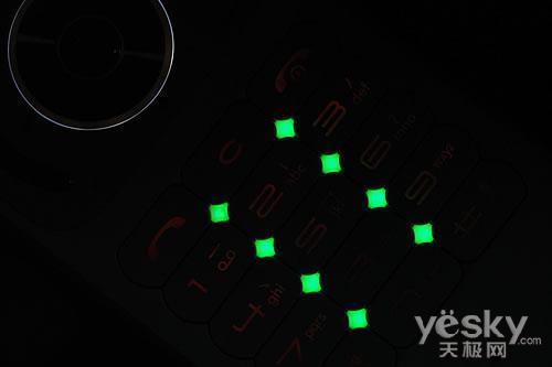 在键盘区域,首先无论是导航键还是T9键盘,按键之间的间距十分理想,降低了串键误操作的可能,但五位导航区域两侧细长的辅助功能键,手感并不理想,键程较短很容易让人感到有力使不出。而在T9键盘区域,宽大的按键还是提供了出色的手感,误操作率也被控制在最低程度,只是由于手机厚度降低后,按键也被压缩的不那么饱满,较为平整的键面经过长时间的操作后,容易产生疲劳感。