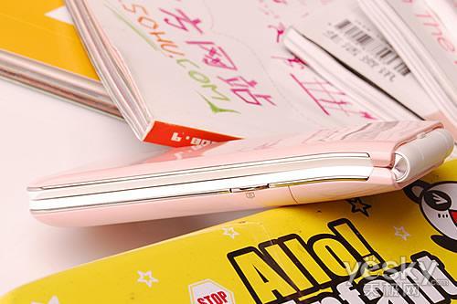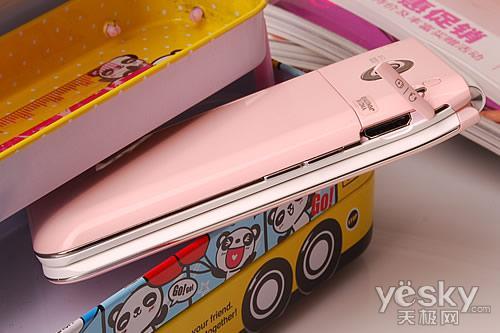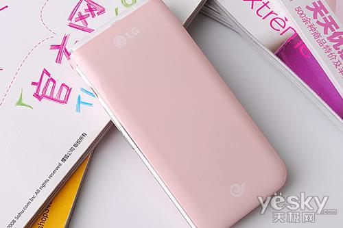 既然是甜品系列的新作,那么LG KV700势必沿袭了该系列作品的一贯特征,粉色机身与翻盖造型就是它最大的特色,回想一下此前的KF350、GD310、GD580等手机,一脉相承的韩系翻盖,被演绎的淋漓尽致。此番KV700,不仅秉承了前作留下的传统优势,更在机身厚度上有所突破,扣合后的机身厚度仅14.4mm,堪比刀锋战士摩托罗拉V3(13.9mm)。