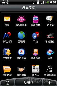 多普达A6388是由移动定制的机型,因此我们可以看到原生自带的飞信、手机视频、手机证劵、音乐随身听、号薄管家、手机导航、139邮箱、移动梦网等丰富的软件应用。