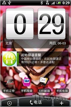 多普达A6388采用了绚丽的Sense界面,这也符合了目前大部分HTC用户的使用习惯。多普达A6388的Sense界面拥有7个分屏,任何一个分屏都可以自由的添加用户喜欢的插件,并且可以随时移动、删除、替换,非常方便。