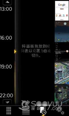 索尼爱立信行货版X2i与改版机一样都内置了非常有特色的面板功能,机身内置了一共有9款不同 风格的主界面,其中包括城市风格、标准风格等等。而且用户可以在一天当中的不同时段设置预设不同的 界面,到了相应的时间手机就会自动切换,绝对是X2i独有的特色,很有个性。