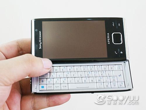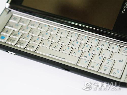 在键盘部分索尼爱立信X2i使用的是银白色的键盘,而且每个键帽都采用了较为棱角分明的设计,所 以给人感觉有较强的力量感。按压键盘的时候手机会发出清脆的“咔吧”响声,质感还算不错。