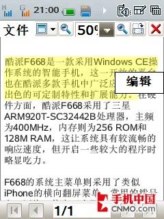 而从产品本身的功能而言,酷派F668的亮点在于其出色的商务功能,以及中国移动提供的3G应用。当然,我们的评测仅限于手机预置功能,不要忘了这款手机还是一款Windows CE平台的智能手机,仍然具有很大功能扩展空间。