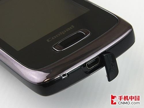 酷派F668的按键和接口设置也尽显简约,在机身左侧是音量调节键,右侧是电源、锁屏键。机身只提供了一个通用性较强的mini USB接口,耳机、数据线和充电器都使用这一个接口。