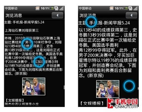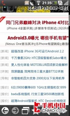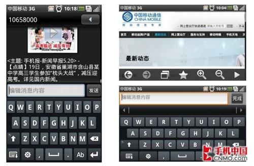 OPhone 2.0已经可以全面支持屏幕的多点触控,在手机的浏览器、图片等功能中都能轻松实现,用户可以通过两个手机的滑动,来完成放大或者缩小的操作。在实际操作中,笔者感觉到OPhone 2.0的系统流畅性比起目前主流的Android手机还是有一定差距的。
