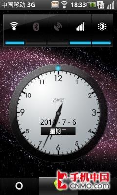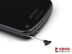 在机身的顶部拥有一个开机键(兼做锁屏键)和一个3.5毫米的耳机接口。在耳机插孔的旁边我们还可以看到一个CMMB电视天线,使用时可以方便抽出。