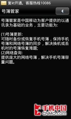 其他方面,三星I7680还内置了多种中国移动定制的商务功能,例如号簿管家可以让用户无线备份手机中的联系人,再也不怕通讯录丢失了。手机证券则可以让我们随时随地关注股市行情。