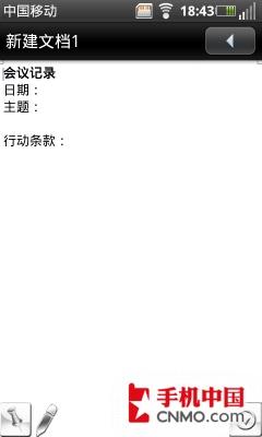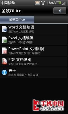OPhone 2.0内置了文档浏览和编辑的软件——金软Office,支持的文档类型包括:Word、Excel、PowerPoint、PDF和TXT。该软件支持Word文档的剪切、复制、粘贴操作,内置的快捷工具栏支持字体的修改。增强的Office功能将更适合商务人士的使用,移动办公将在OPhone 2.0系统上更好的实现。我们使用三星I7680打开一个3.8MB的PDF文档,仅用了2秒,速度还是可以让我们接受的。
